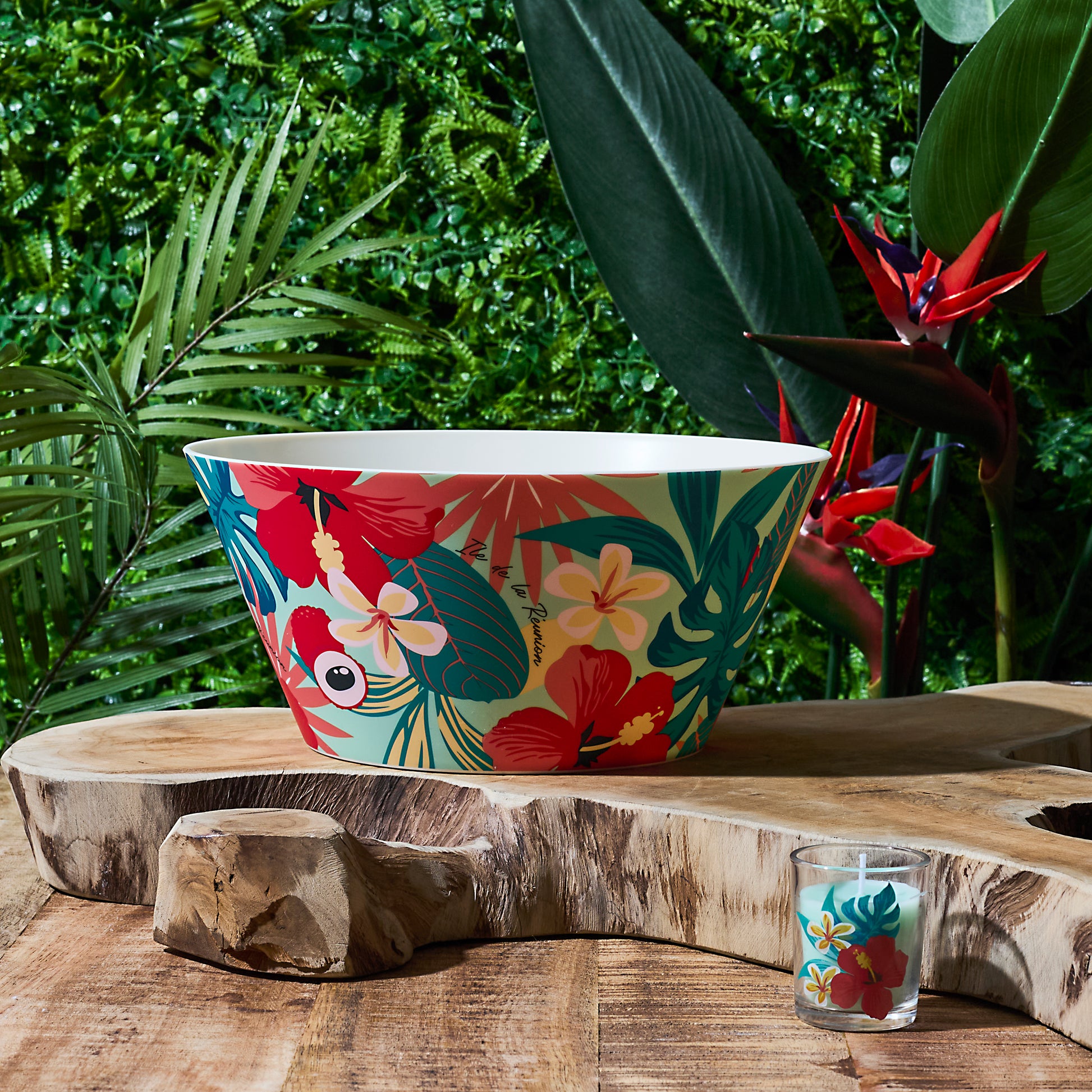 Faites entrer le soleil dans votre cuisine avec ce saladier au motif tropical vibrant, parfait pour toutes vos préparations estivales !